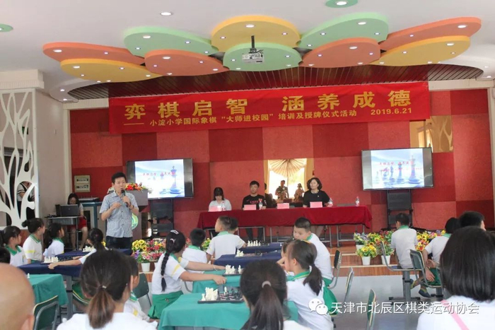 2019年6月21日,由天津市北辰区棋类运动协会主办的国际象棋大师进校园系列活动走进了北辰区小淀小学。国际象棋大师、天津市国际象棋协会秘书长王悦民、北辰区小淀小学校长邵瑞芳、北辰区小淀小学学生家长、北辰区棋类协会会长谷利出席了本次活动。