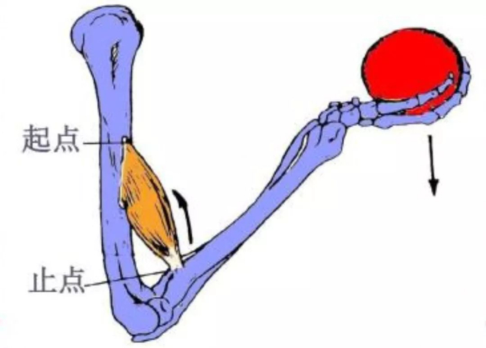 肌肉靠近躯干的一端称之为起端,离躯干较远的一端称之为止端。