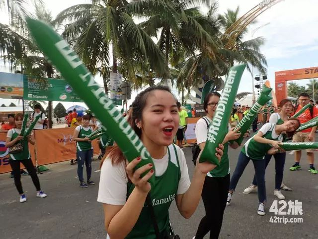 沿着赛道边,会有当地的人民出来为你欢呼鼓舞,赛事的助威啦啦队也会双手握彩带球为你热情呐喊。她们麦色发亮的皮肤衬着东南亚灼热的太阳反应的热烈而不同凡响。