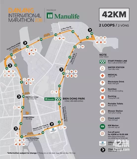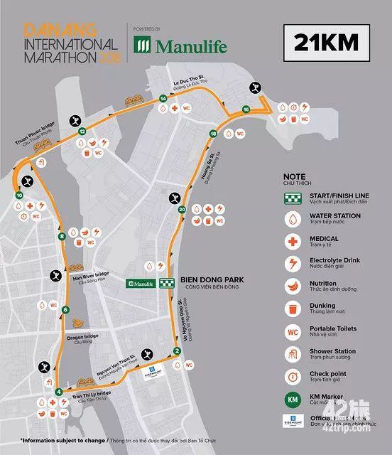 赛道一共跑6次桥。涵盖整个岘港精华地段,通过比赛,马拉松选手将有机会体验到越南各条最美丽道路以及欣赏岘港市的实景风光。