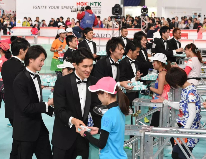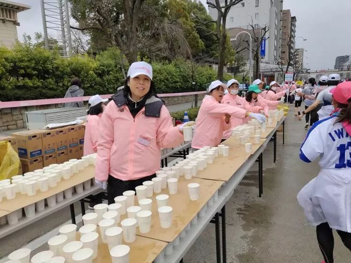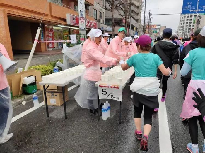 日本赛事的细致体现在方方面面,会在补给站准备纸巾,让你吃完补给之后清爽的、美美的继续奔跑,又随时清理一切垃圾。