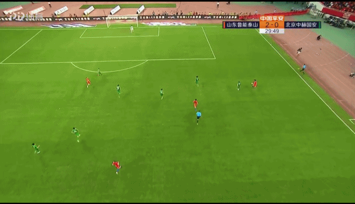 仅仅2分钟后,本赛季中超最精彩的一次助攻出现了。蒿俊闵在后场突然超车过人,一路冲到前场右路,随即送出精妙传中,格德斯跟进包抄抽射得手!鲁能2分钟内取得了2粒进球,2-0领先!蒿俊闵这一次助攻完成了贝尔式的超车。第38分钟,奥古斯托左路直传,王子铭禁区左侧小角度打门被王大雷扑出。第40分钟,比埃拉尝试一脚远射,皮球击中左门柱弹出。