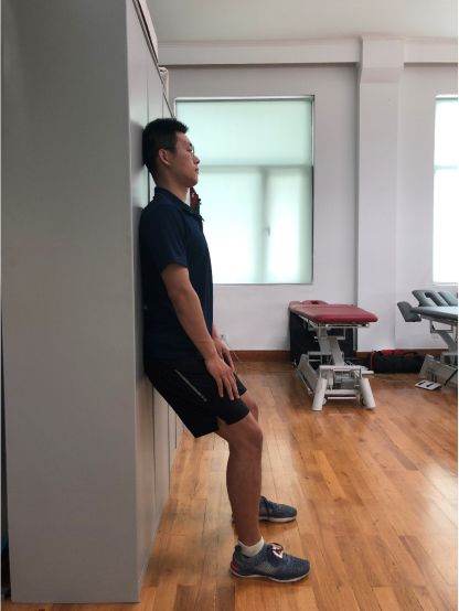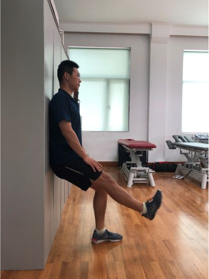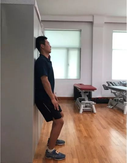 此外,还可以进行单腿靠墙静蹲,单腿练习对于核心控制提出了更高要求。