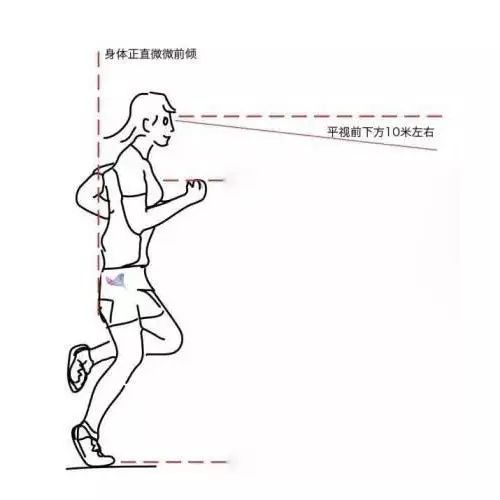 3、身体:保持直立,这样有利于保持平衡、呼吸和步幅。躯干不要左右摇晃或上下起伏太大。腿前摆时积极送髋,跑步时要注意髋部的转动和放松。