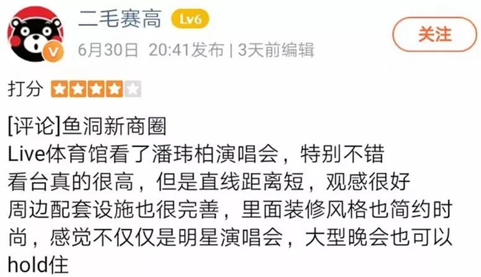 在大众点评搜索华熙LIVE·巴南文体中心,截取部分点评: