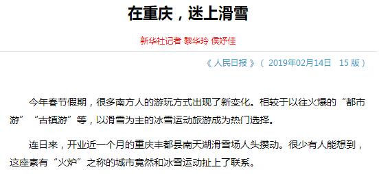 在重庆当地媒体网站搜索,近一年来与冰雪运动有关的报道不少,如: