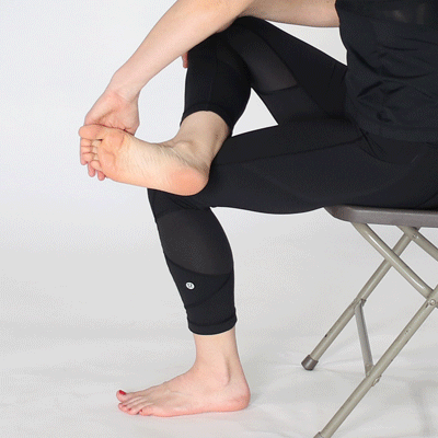 动作3 脚踝伸展步骤1:坐在一张椅子上,将一条腿翘在另一隻腿上。