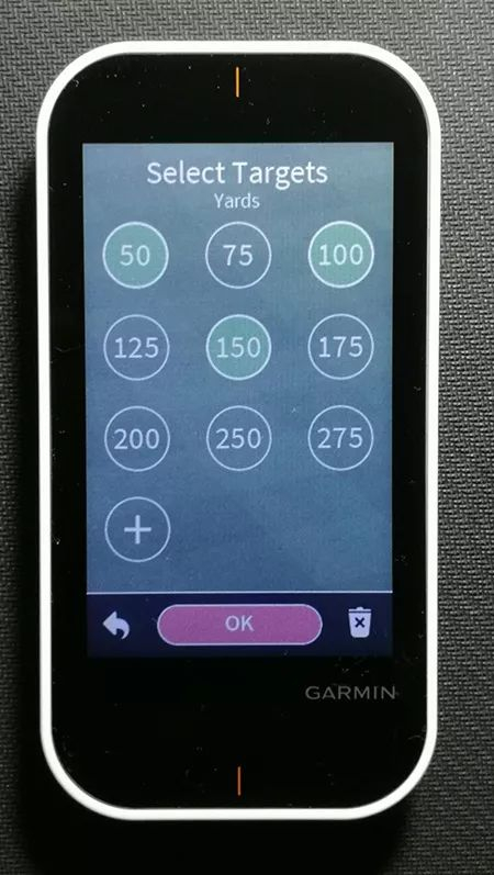 第四个功能选项是“TargetPractice(目标训练)”。你可以选择50码以上(包括50码)的任意一个或多个距离作为目标,每个目标进行5次击球。G80会根据球落点与设置目标的远近而评分。目标训练功能可以个人使用,也可以两人一起使用,让枯燥的练球变成一场分数直观的练习,或是作为两个人的练习场比拼。