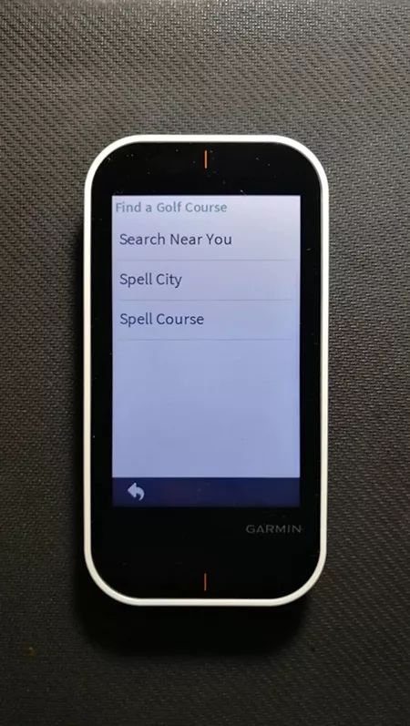 在主菜单中,G80有5个功能选项。第一个是“Start New Round(开始新的一轮)”。进入后,你便可以选择球场。GPS信号正常时,它会首先根据你的位置显示周边球场,你也可以通过Preview选项进入找球场功能,直接输入所在城市或球场名来搜索球场。