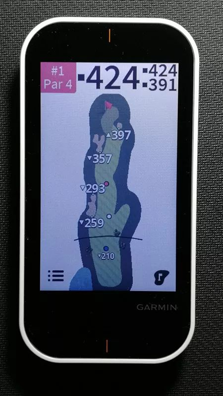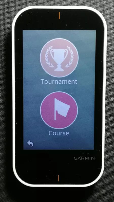 3操作感受长按主机右侧最上面带有红点的按键就可以完成开机。首次开机时,会有初始设置,包括语言、长度单位、开球距离。这块3.5英寸的屏幕分辨率为282*470像素,屏幕可以根据环境亮度自行调整,而且各个方向的可视角度很高。佳明官方称其为阳光屏,当我们把它拿到户外阳光充足的地方,它的可视性确实没有问题,较大的字体也非常易于读数。另外,屏幕点亮时长和亮度都可以设置。