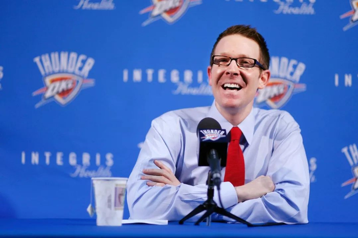 如你所知,被莫雷连续薅羊毛的这支球队叫雷霆。具体而言,被莫雷连续占便宜的具体人物则是他的同行、近几年来让无数雷霆球迷恨不得直接拖出去人道毁灭的雷霆总经理萨姆-普雷斯蒂。就是这位仁兄一手拆散了杜兰特、威斯布鲁克、哈登“雷霆三少”的准王朝组合,转而给雷霆留下了一地鸡毛。