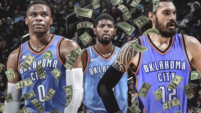 除了单赛季的奢侈税进阶制外,NBA还设置了超级奢侈税,即,如果某支球队在过去四年内三次缴纳奢侈税,那么就需要缴纳超级奢侈税,即在原有奢侈税的基础上再多一倍。而雷霆此前在2014-15赛季已经触发奢侈税线,而在2016-17赛季和2017-18赛季更是NBA奢侈税缴纳头号大户。而2018-19赛季如果再缴纳奢侈税,雷霆最多可能要缴纳超过1亿美金的超级奢侈税。要知道,作为小球市球队,雷霆在2019年的最新市值也仅仅只有12.5亿美金。最可气的是,在缴纳了这么多奢侈税后,雷霆居然看不到任何冲冠希望,连续季后赛首轮游让老板已没有任何勇气继续烧钱。