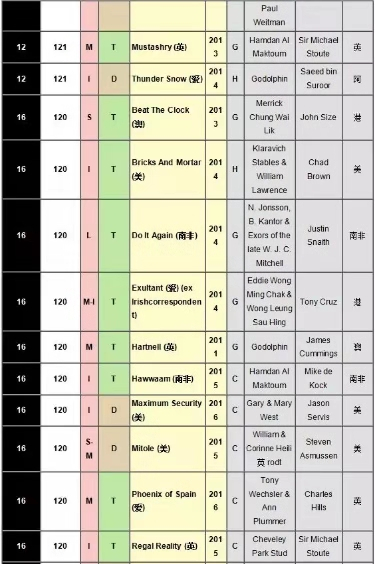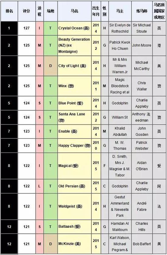 注:浪琴表世界马匹排名由浪琴表世界马匹排名委员会编订。