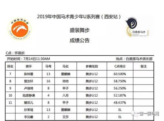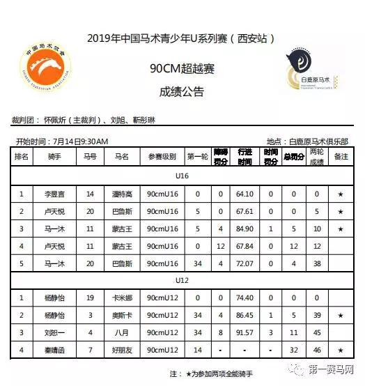 7月14日,由中国马术协会、陕西省体育局主办,陕西省冬季运动管理中心、陕西省马术协办、西安白鹿原马术俱乐部承办的2019中马协青少年U系列赛(西安站)第二日赛事顺利落幕。作为中马协2019系列赛事指定直播合作伙伴,第一赛马网对本站赛事进行现场直播。