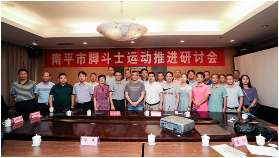 南平体育局局长郑小毅传达了南平市政府(2019)66号文件《关于研究南平市推进脚斗士运动项目工作的纪要》(以下简称纪要)精神。《纪要》明确,(1)在全市10个县(市、区)选取部分中小学校作为“中华脚斗娃”试点校,武夷山市选取4所中学和4所小学作为试点校,其他县(市、区)各选取1所中小学作为试点校,将脚斗士运动项目列入其校本课程,“中华脚斗娃”教材作为体育课校本课程。把脚斗士运动纳入各中小学校校运动会比赛项目,积极支持非试点学校组建脚斗士运动项目兴趣小组,在学生课外体育活动时间开展“中华脚斗娃”活动;积极支持武夷学院开展大学生脚斗士运动。(2)南平市体育局要加大扶持力度,将每年在武夷山举办的“武夷山•阿里山”海峡两岸脚斗士赛事办成精品赛事,持续扩大影响力;在此基础上,每年举办一次市级的“中华脚斗娃”联赛。同时,将脚斗士运动列入我市承办的2022年第十七届省运会大学生部竞赛项目以及群众体育比赛项目。(3)积极支持社会力量办赛,鼓励校外培训机构、协会等组织开展“中华脚斗娃”比赛。郑小毅要求各县市为助推中华脚斗娃项目在当地的落地发展拟定师资方案和赛事规划。