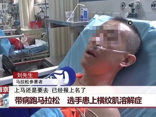 先来说一起热门事件:在2016年南京马拉松比赛上,刘先生到南京后就开始拉肚子,但是他仍带病挑战全程,20多公里后他感到身体出了问题,但仍没有退赛,到36公里,他就呼吸困难、头晕目眩、意识模糊然后被送到了医院。经医生诊断,刘先生出现了横纹肌溶解症,还有心肌炎的症状,情况已十分危险。