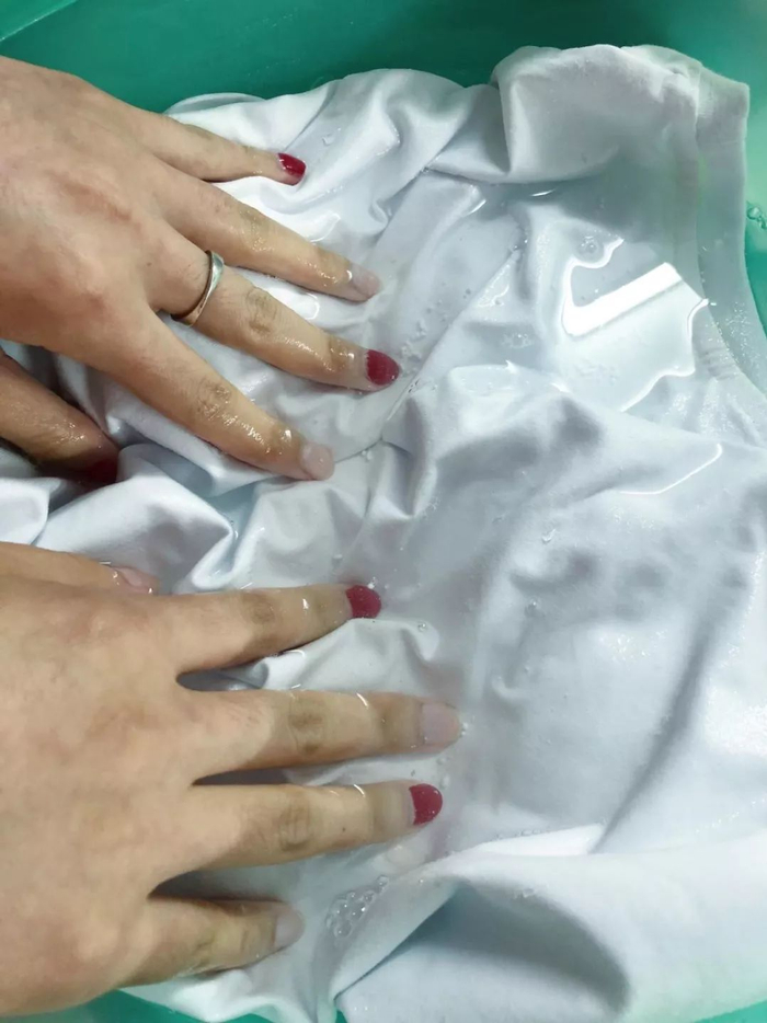 因为经常户外跑,我又喜欢浅色的运动服,很多时候也不知道蹭到什么脏兮兮的,很难洗干净,加上现在是黄梅天,简直是噩梦。