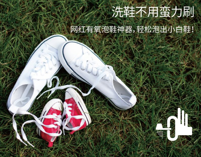只需要泡一泡,所有污渍几乎全部自动分解祛除,鞋子上的顽固污渍也只需要软刷轻刷就能搞定,无论何时何地都方便洗涤。不伤衣物鞋袜,简单浸泡让你的宝贝焕然一新,真是省时省力!