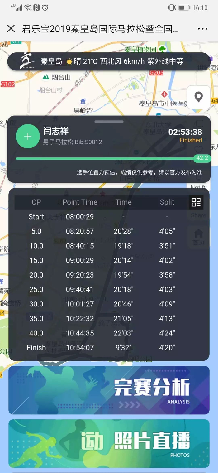 还是今年的秦皇岛马拉松,来自北京的62岁大爷闫志祥跑了2小时53分的成绩,排名60-64岁年龄组第一,还刷新了自己在去年秦皇岛马拉松上跑出的2小时55分59的个人最好成绩。