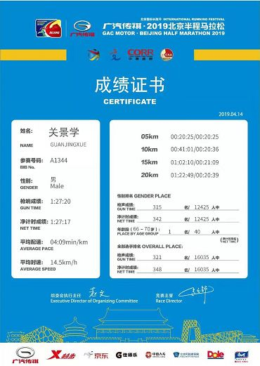 6、70岁关景学,北半马1小时27分,年龄组第一