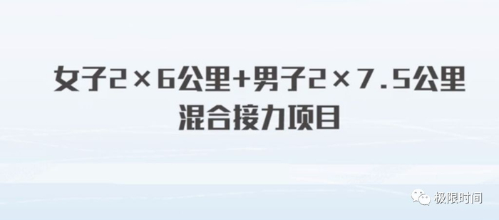 在混合接力赛中,冬季两项混合接力由2名女选手和2名男选手组成。2名女选手各滑行6公里,2名男选手各滑行7.5公里,每位选手各自进行2轮射击。