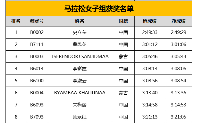 包头马拉松:跑步最快 8 位美女曝光!(名单+成绩+照片)