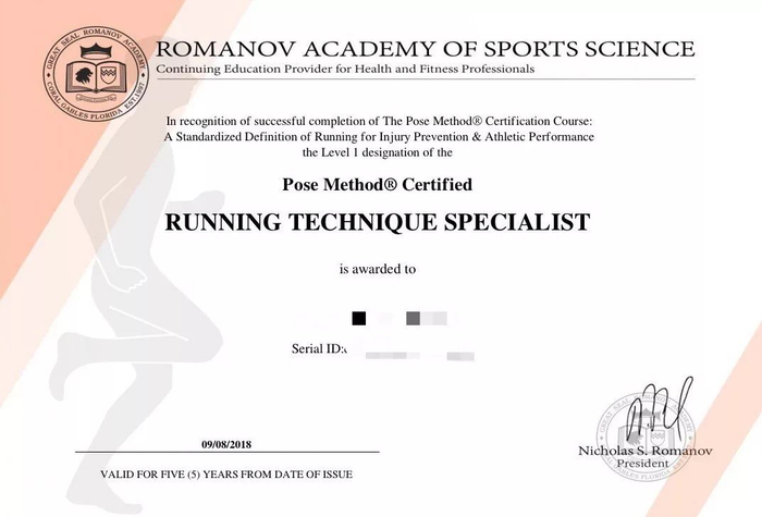 答:Pose Method®教练证书是由Pose Method®颁发,证书由美国ATPA(美国物理治疗师协会)和BOC(全美体育教练认证系统)认可、备案。