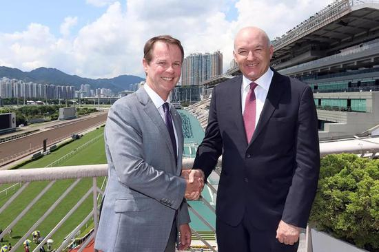 大卫希斯(右)与马会赛马事务执行总监夏定安(左)。