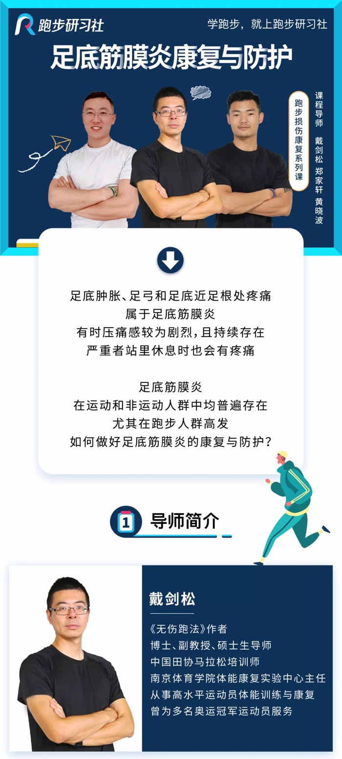 跑步运动研习社邀请3位国家级导师精心打造《足底筋膜炎康复与防护》系列课: