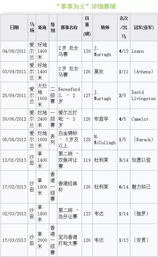 今日要为大家推出的是,曾于2013年在“十三少”韦达胯下胜出香港打吡大赛及香港杯冠军的赛驹“事事为王”。