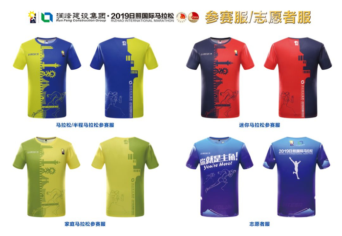 2019日照国际马拉松的服装由知名户外运动品牌沃克森琦赞助,采用国际马拉松赛事主流面料,100%聚酯纤维编织,透气性好,光滑舒适,时刻保持比赛过程中皮肤清爽。设计方面,今年的参赛服装全部采用了左右切割撞色处理,具有更高的辨识度和纪念意义。