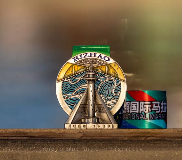 整个奖牌的画面设计,将灯塔、海浪、城市和奔跑的人群结合在一起,奖牌正面的太阳初升与背面的夜幕降临首尾相连,在和谐共生中良性循环。奔跑者们迎着朝阳出发,既是城市的一部分,更是城市的主角,与2019日马主题“你就是主角”紧密呼应;日照灯塔伴海而立,散发出指引前进方向,照亮胜利的曙光,在潜移默化中向我们传递了现代马拉松精神,也将日照打造“活力之城、运动之城、健康之城”的城市形象体现得淋漓尽致。