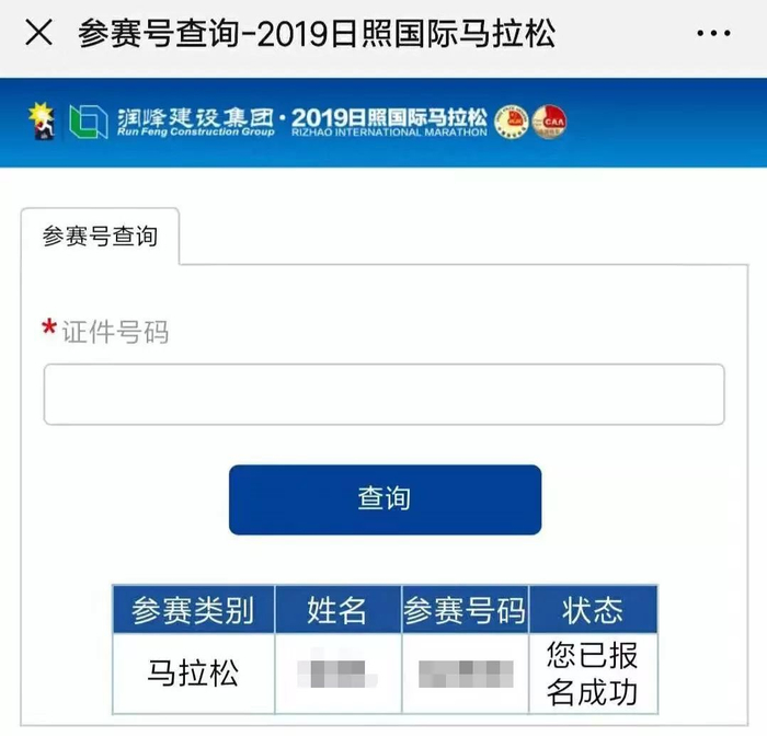 www.rizhaomarathon.com进行查询,或保留组委会在赛前发送的参赛号码短信进行查看).