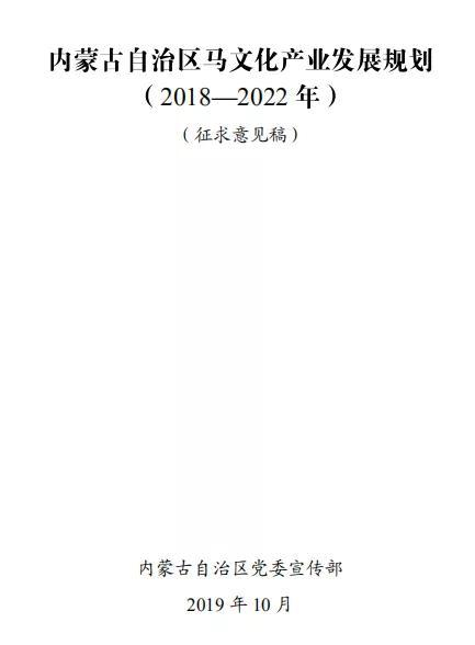 内蒙古此次推出《内蒙古自治区马文化产业发展规划(2018-2022年)征求意见稿》不同寻常,这是在习近平总书记倡导的“吃苦耐劳、勇往直前”蒙古马精神的全面体现,预示着马产业在内蒙古的美好未来,将成为全国的一面旗帜。本次征求意见稿期待您的参与。