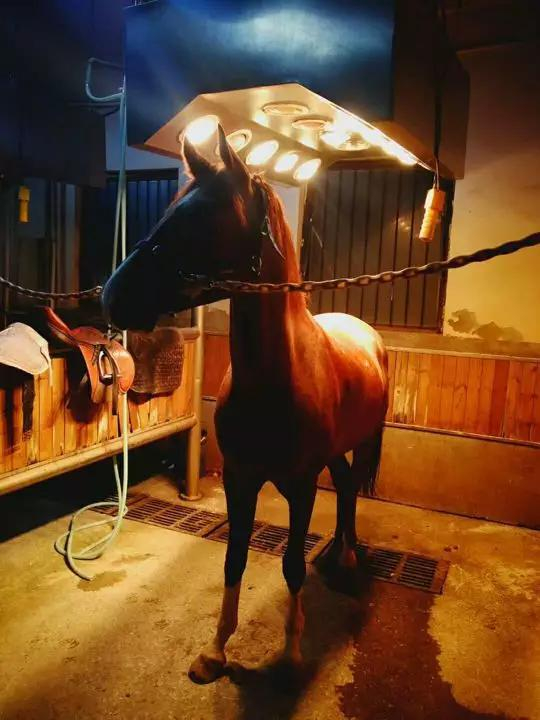 这项护理主要是冬日进行。结束了一天的训练,不妨给马儿烤个背。在冬日里大概没有什么比烤背更加温暖舒适了!烤背可以缓解马匹背部肌肉,减少肌酸的生成,尤其有助于腰不好的马匹,保健作用更明显!