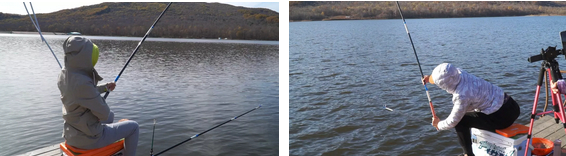 说实话,来到大通河水库的第一天并不是很冷。嘉宾娜娜和队员少媛这次同时选择了手竿作钓,并且打赌掐鱼,由鱼获少的一方给全组购买可乐。两个人PK的火热,却一点也不考虑我们的感受。相比可乐,其实我们更想喝奶茶......