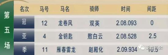 冠军:玉龙永兴 马主:侯兴建 骑师:赵心刚