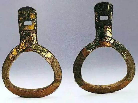 铜鎏金木芯马镫(公元415年) 辽宁省博物馆藏李约瑟说过,什么是人类最简单、同时又是对人类影响最深远的发明?就是中国人发明的马镫子!像中国的火药在封建主义的最后阶段帮助摧毁了欧洲封建制度一样,中国的马镫在最初阶段帮助了欧洲封建制度的建立。