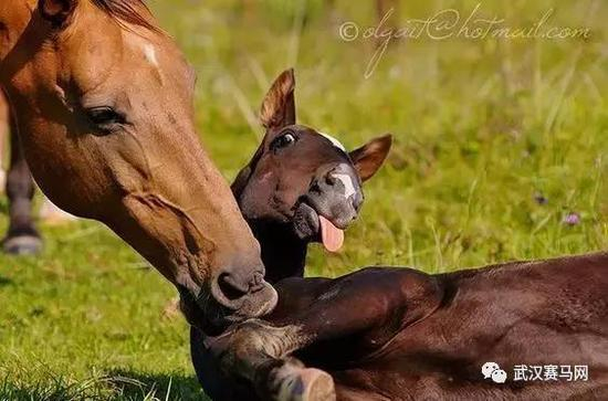 比赛拿第一,当然不能给骑师抢了风头,赶紧用灵活的舌头弥补用有限的面部表情照张靓相!