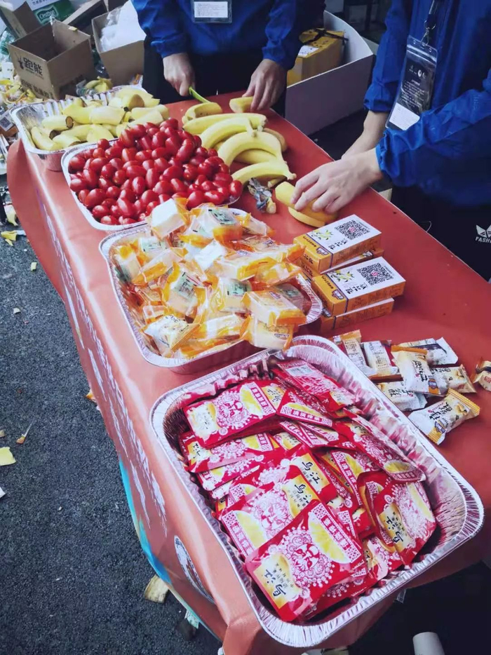 补给物资有小番茄有香蕉有能量棒有魔力水动乐盐丸,但是朋友说跑440的他们已经没有能量胶了……