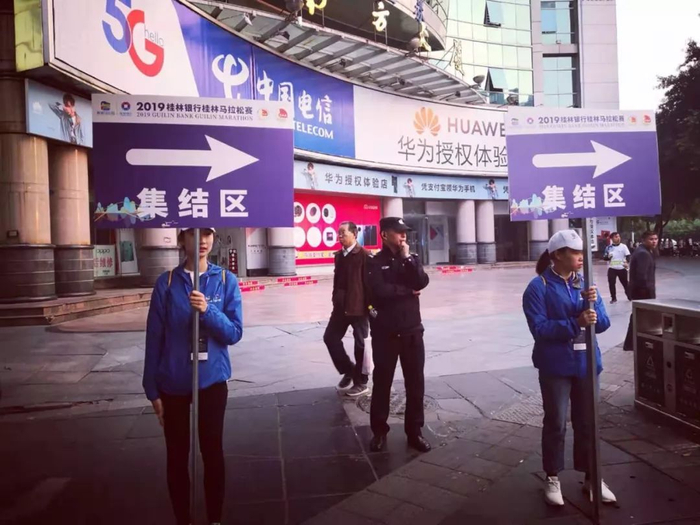 比赛起点在桂林中心广场,起点组织总体有序,集结区指示牌比较方便,志愿者热情,但因为参赛人数较多,部分区域进场安检排队较长。