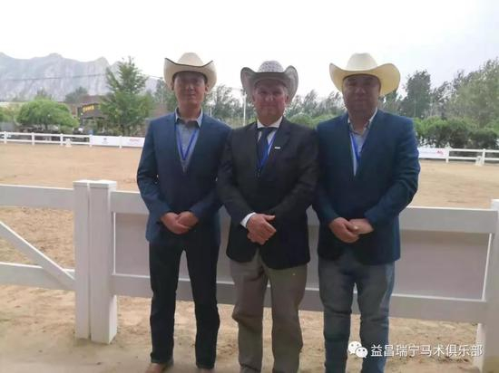 益昌瑞宁马术俱乐部创始人高健、覃恺和皮尔老师。