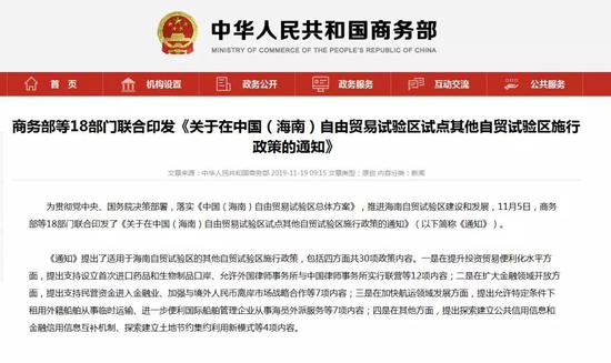 建设中国(海南)自由贸易试验区是以习近平同志为核心的党中央着眼于国际国内发展大局,深入研究、统筹考虑、科学谋划作出的重大决策。为贯彻党中央、国务院部署,落实《中国(海南)自由贸易试验区总体方案》,推进海南自贸试验区建设和发展,商务部等部门研究提出了在海南自贸试验区试点的其他自贸区施行政策,已经国务院同意。
