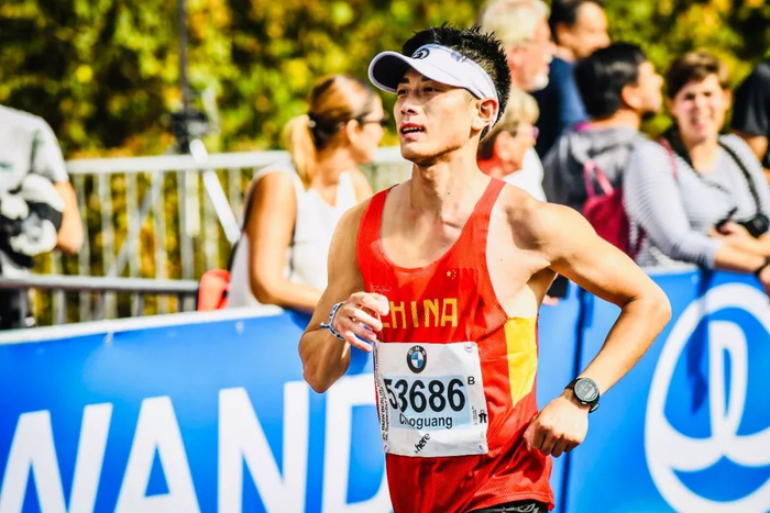 前半程,戴朝光用了355配速,稳中求胜,到30公里处,他的腿有点抽筋。这次他有经验了,改用其他肌肉群发力,大步甩胯,保持不降速,一路向前。