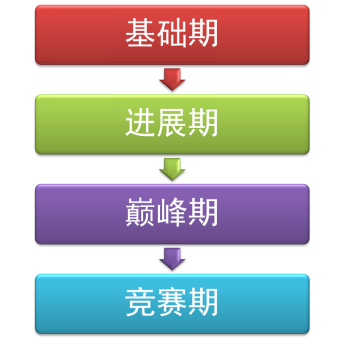 一般来说,准备一场马拉松需要3-4个月的时间,要经历四个阶段:基础期→进展期→巅峰期→竞赛期。