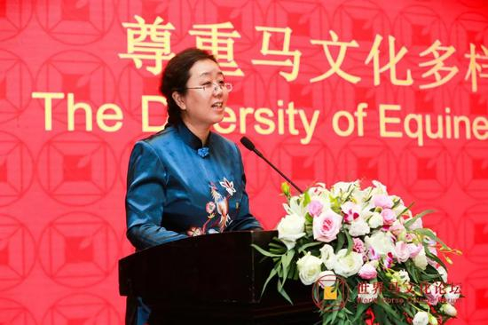 在“尊重马文化多样性”论坛上,美国、俄罗斯、新西兰、西班牙、吉尔吉斯、土库曼斯坦等国代表,一一介绍本国马文化和马产业,阿拉伯马、汗血马、西班牙马、挽马等各类型马匹展示各自魅力,现代速度赛马、民族马术、民族赛马、马球等交相辉映。不同类型的马文化,在“尊重马文化多样性”论坛上和合共鸣,共奏世界马文明之歌。
