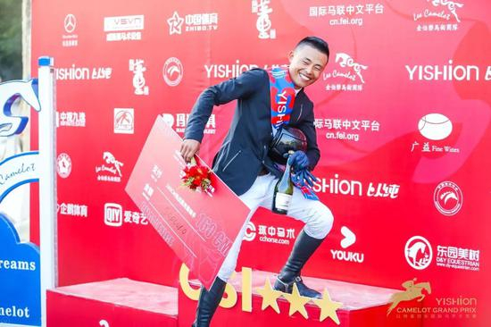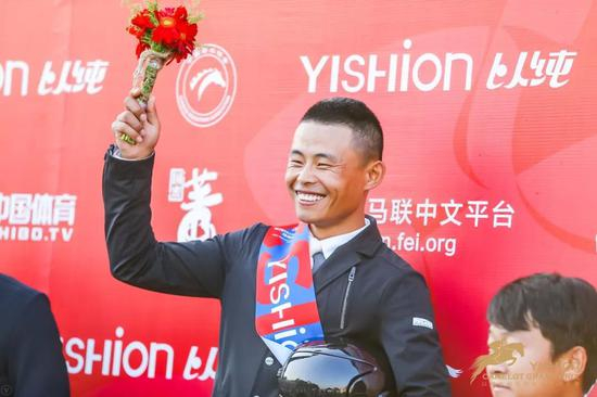 紧张的比赛之后,令所有人惊喜又意外,站在冠军领奖台上的是来自山东福龙国际马业的90后骑手高晓坤,他搭档马匹“艾莫瑞”(Emary-As),成为全场唯一0罚分、唯一在72秒内完赛的“黑马”组合。