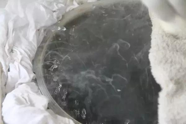 ② 号制冷却严禁直接在液氮罐中进行,可采用泡沫塑料容器、保温铝合金或不锈钢容器。将液态氮倒入上述容器中,待停止沸腾后,将金属烙号器浸到液氮中,烙号浸入后一般会有两次大的沸腾现象,待第二次沸腾平静后,温度才能够达到-197℃以下的超低温,此时号制才可准备使用。