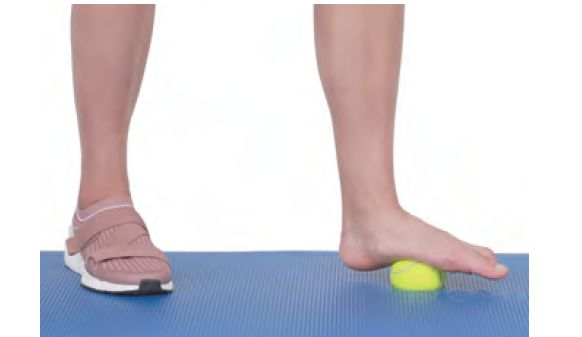 来回踩网球放松足底筋膜。