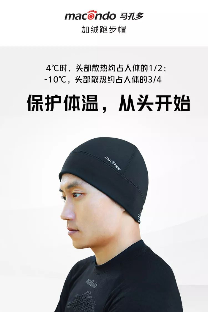 北方跑友容易冻耳朵,冻伤了整个冬天都难受。这里推荐马孔多加绒跑步帽,不光护头还能包住耳朵,内层抓绒而且透气性好,不会闷热。